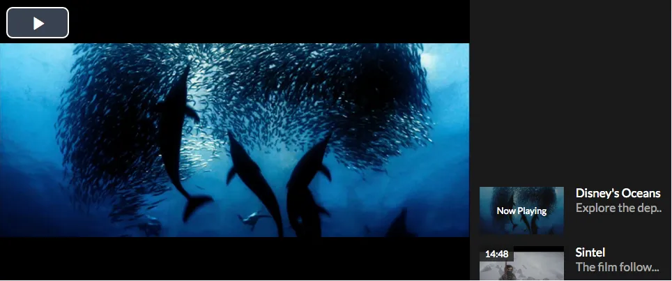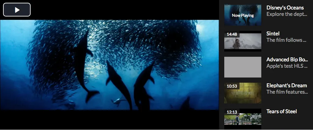 For this example, We’re using the videojs-playlist-ui and videojs-playlist plugins for the playlist functionality. We then wrap the player in a container and put the playlist-ui element in there as well.